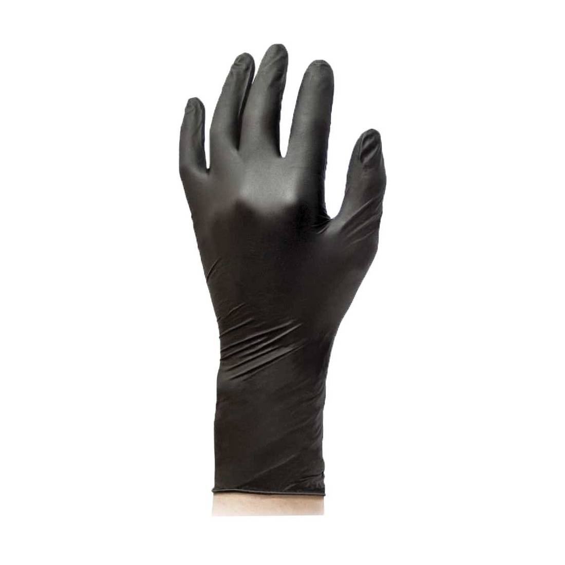 Realizzati in mescola di nitrile clorinato. Non sterili, super sensibili, microruvidi sulle dita. Manichetta lunga 30 cm per maggiore protezione dell'avambraccio, spessore 0,14 mm. Applicazioni: industria cosmetica, detergenza e pulizia generale, saloni bellezza, meccanica. DPI categoria III, EN ISO 374-1:2016, EN ISO 374-5:2016. Senza polvere, colore nero. Confezione 50 pezzi. Sciolti in scatola.