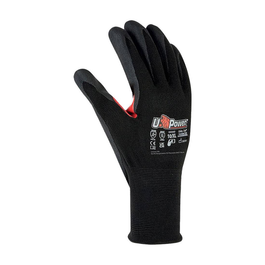Fodera nylon e spandex nero, rivestimento nitrile foam nero. Colore rosso/nero. Protezione contro i rischi meccanici e termici. Alto senso tattile, facilita i lavori di precisione. Compatibile per l'utilizzo di smartphone e tablet, sensibilita' adattai ai touchscreen. Resistenza all abrasione. Rinforzo rosso tra pollice e indice per una durata maggiore. Indicato per logistica, edilizia, agricoltura, service e industria, pesca, automotive. A norma EN 407:2020, EN388 4121A.