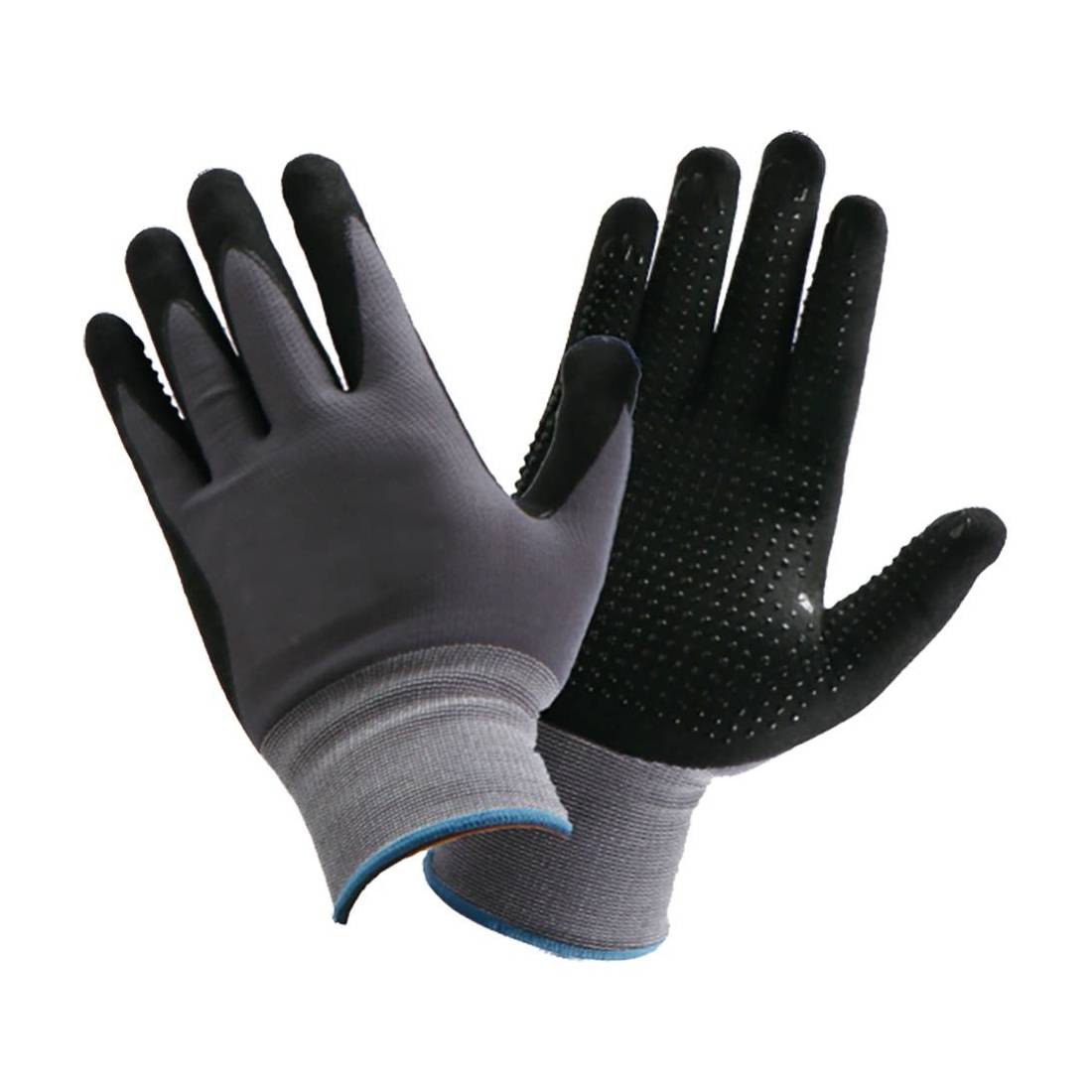 Puntinati e realizzati in nylon/spandex (poliuretano elasticizzato) con rivestimento rivestito in microschiuma superflessibile e nitrile . Resistenti a strappo ed abrasione. Ottimi nel settore meccanico, industriale, edile, agricolo, lavorazione laminati e automobilistico. Rischio meccanico: 4 1 3 2 X. Conformi alla norma EN 388:2016 + A1:2018.