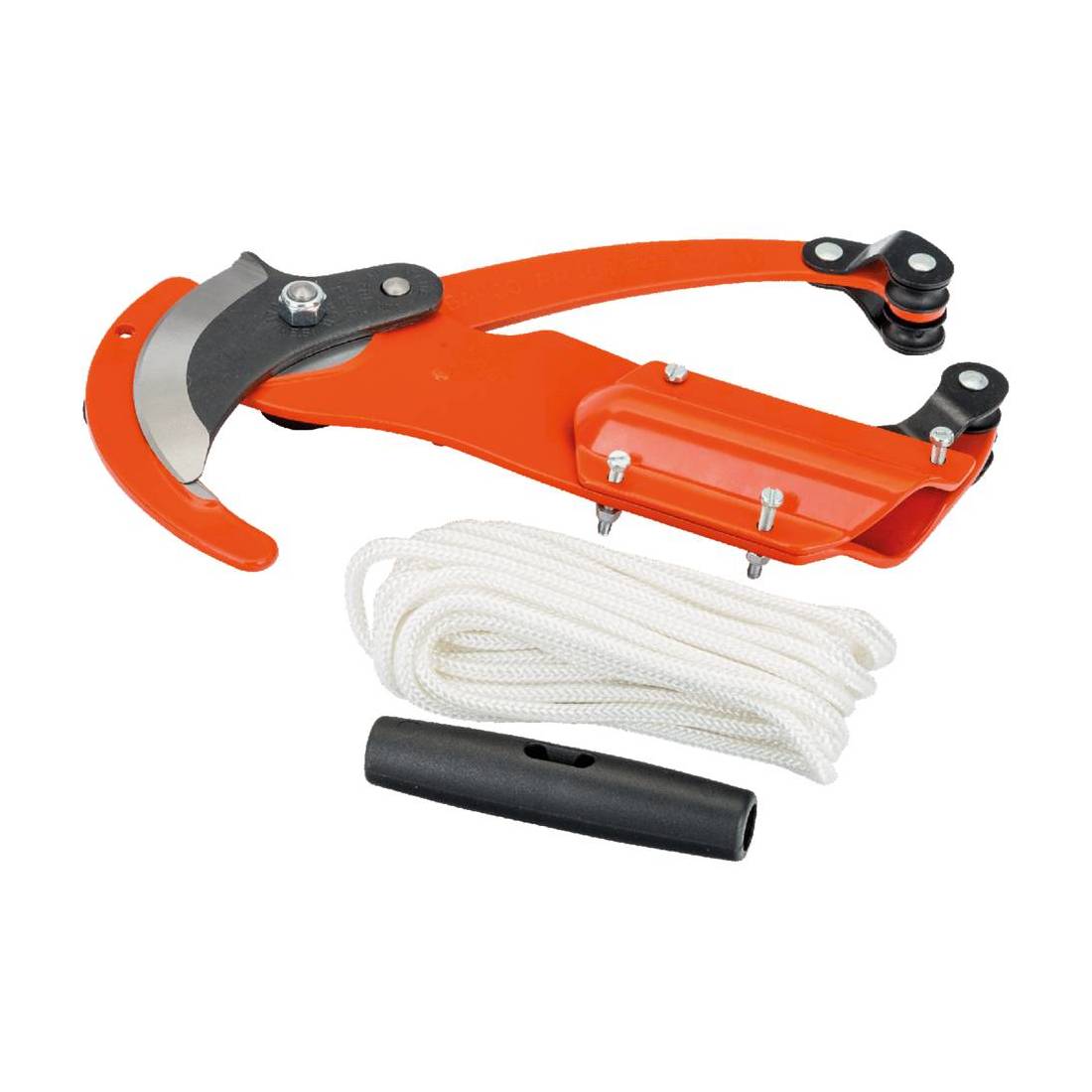 Professionale. Lama temprata, attacco regolabile per asta con diam. 25 - 35 mm, fune da 5 mt. Con maniglia.