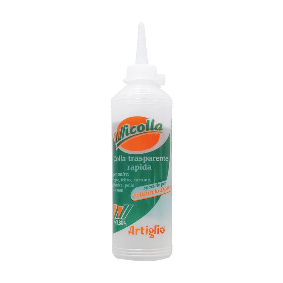 Adesivo acetovinilico trasparente. Speciale per polistirolo espanso. Grazie alla sua formulazione, è indicata per legno, feltro, cartone, plastica, pelle, cuoio e tessuti. Con beccuccio spandi prodotto.