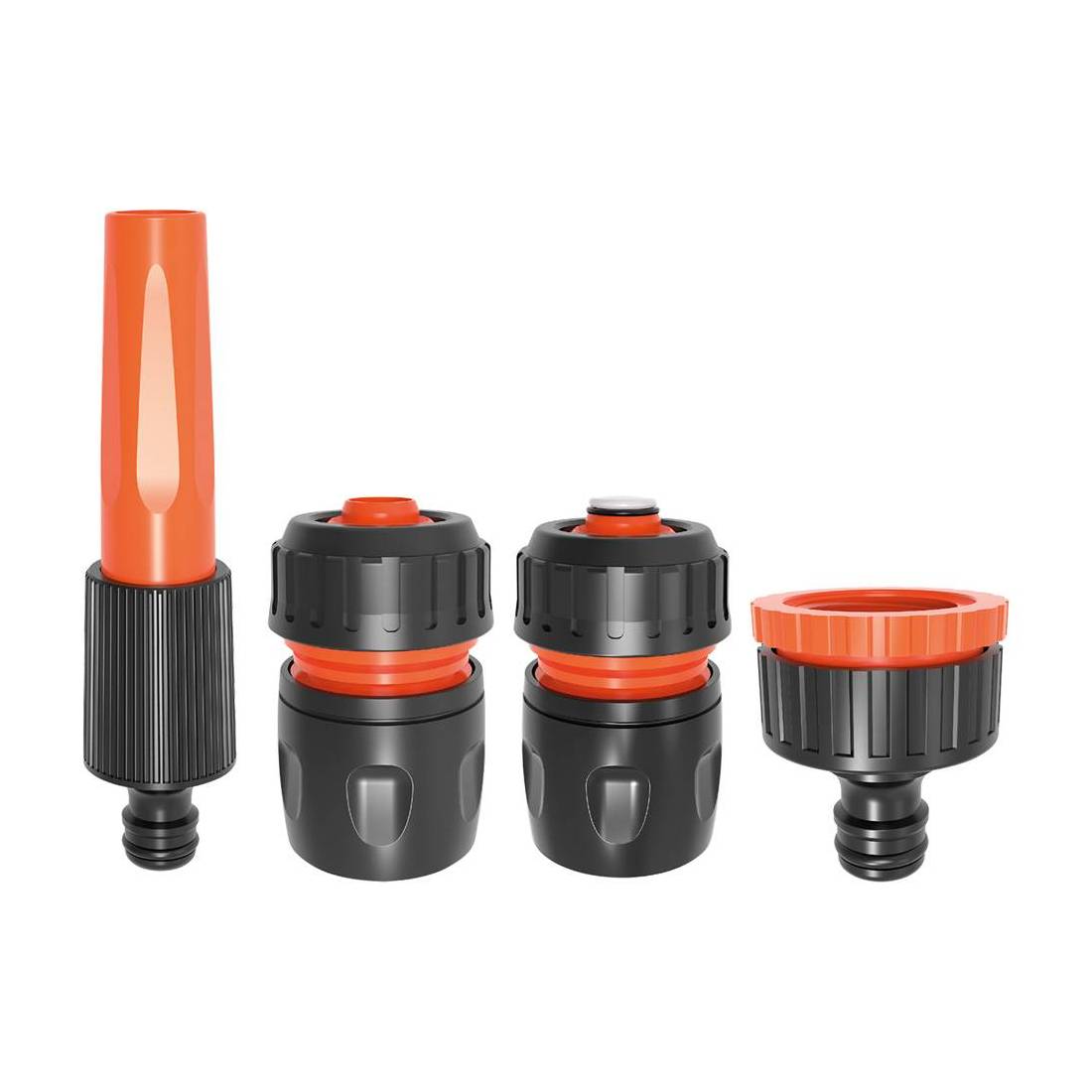 Contenuto: lancia a spruzzo regolabile, presa a rubinetto 3/4', raccordo da 3/4', raccordo da 3/4' aquastop. Applicati su cartoncino appendibile.