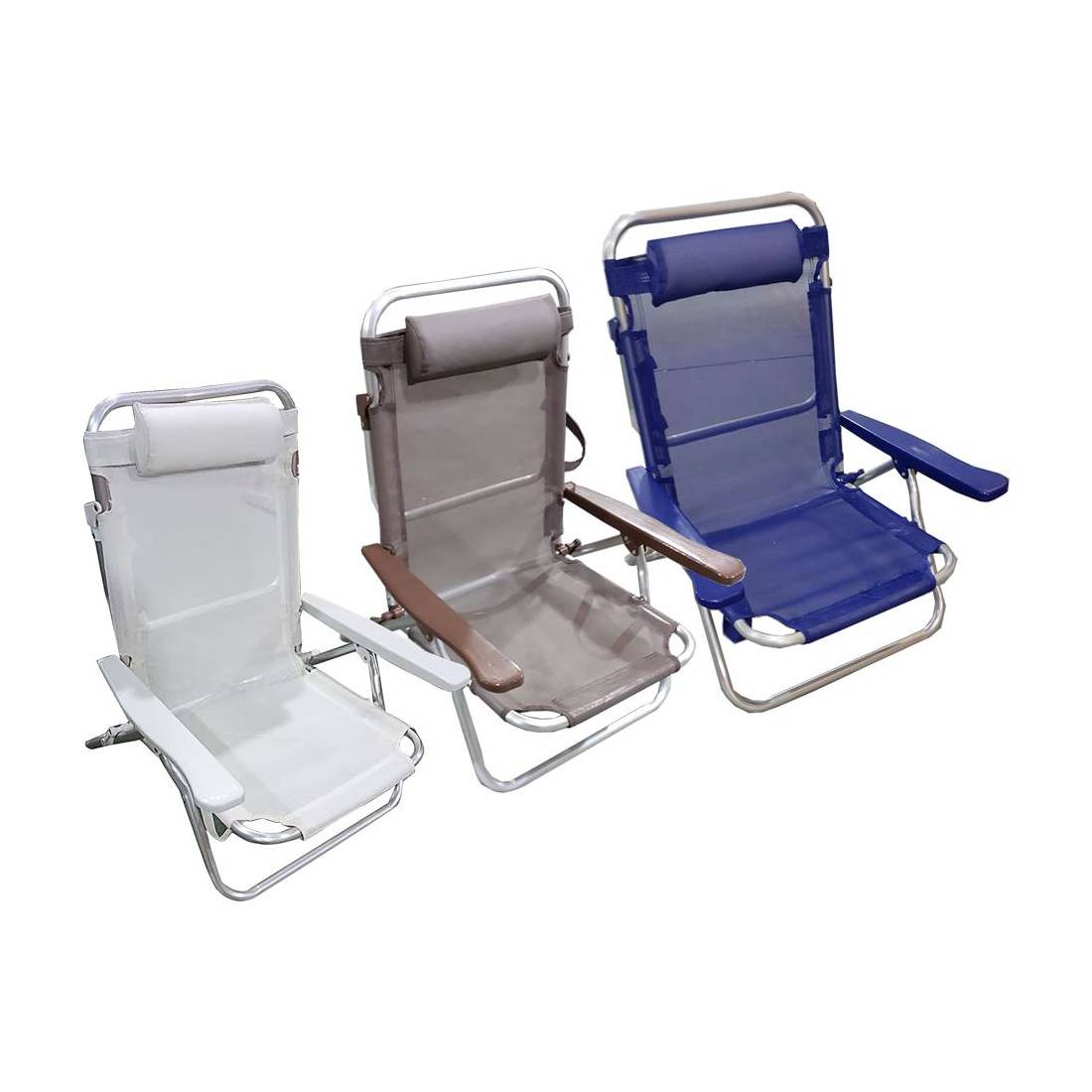 Realizzata in alluminio, tubolari da Ø cm 2,5. Tessuto in textilene colorato. Dimensioni: cm. 53x62x h.77.