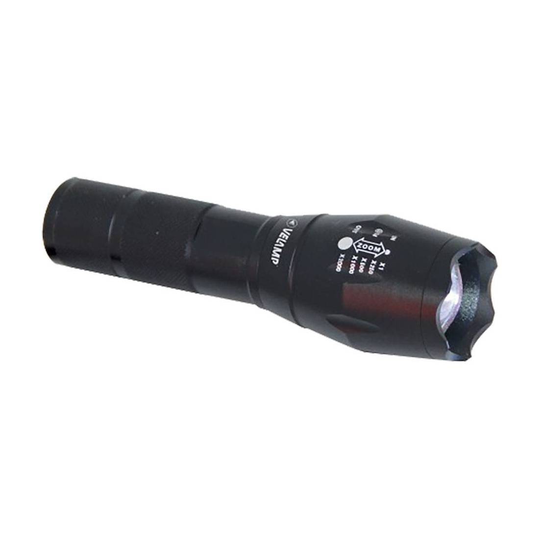 Con funzione zoom integrata per una visione in lontanza o ravvicinata. Iluminazione ampia, potente e precisa. Funziona a batterie 3xAAA (non incluse), 350 lumen. Portata 300 metri, autonomia 24 ore. Resistente ad acqua e pioggia. Perfetta per utilizzo all'aperto, in attivita' di pesca, trekking, campeggio. Utile anche per attivita' professionali manuali che richiedono illuminazioni precise e stabili come lavori edili o meccanici. Dimensione 40x40x137 mm. Protezione IP54.