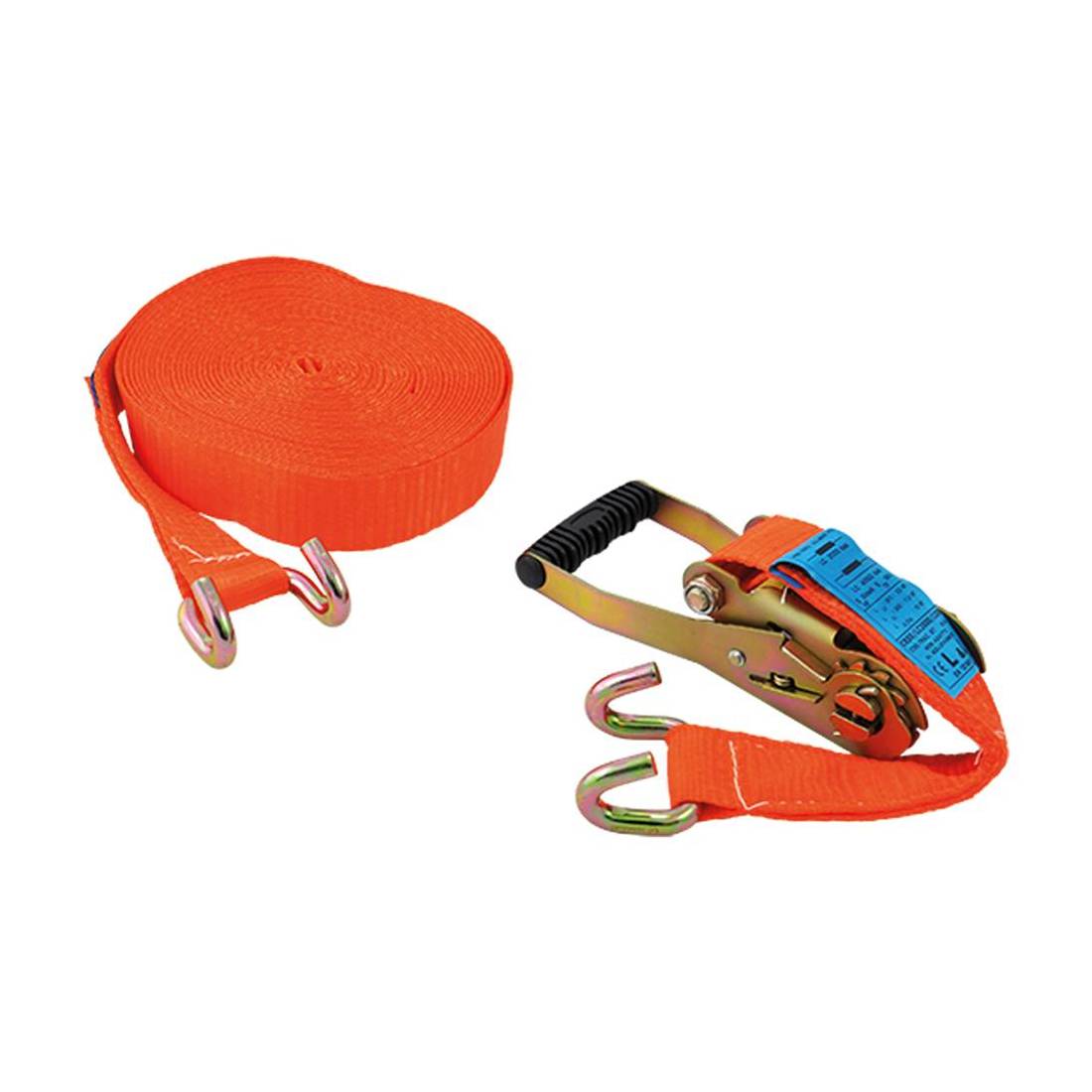 In poliestere, con tenditore a cricchetto. Portata 5 tonnellate. Rispondente alla normativa EN12195-2.