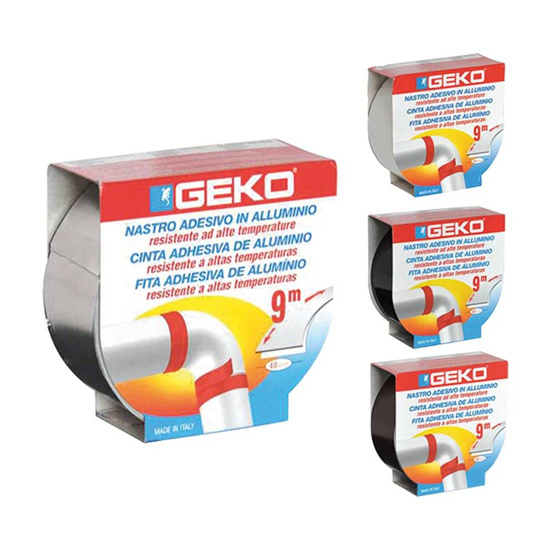 Resistente ad altissime temperature. Consente di coibentare ed isolare zone metalliche che arrivano ad alta temperatura, grazie alla pellicola di alluminio adesivo si attacca e si modella in funzione del supporto dove aderisce.