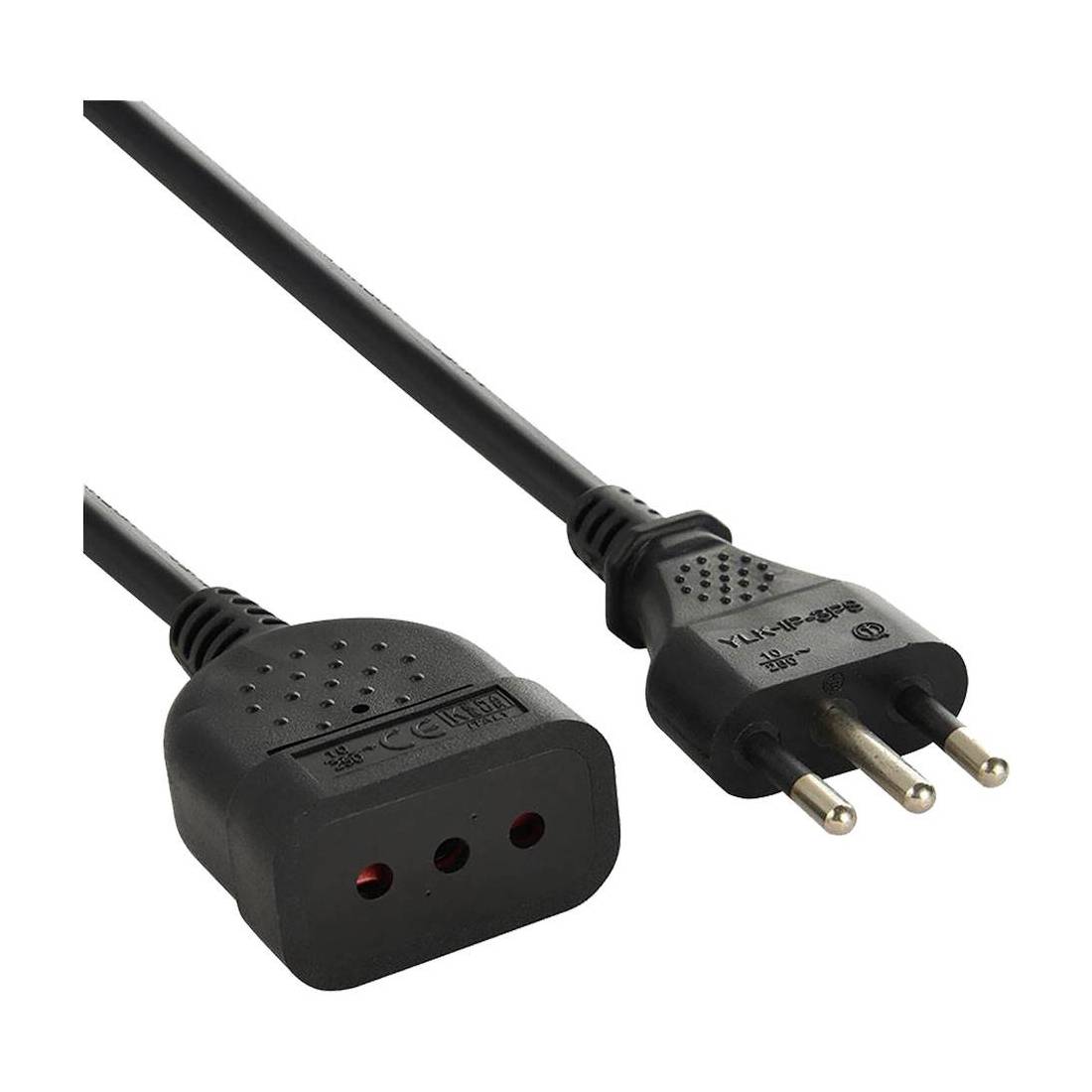 Cavo 3x0,75. Spina/presa 2P + T 10A. Colore nero. Certificato Kema Keur.