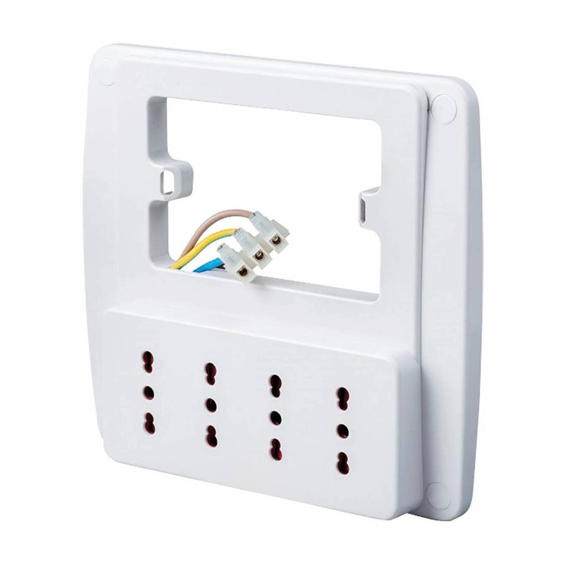 Adatta per scatola a 3 posti. Con 4 biprese: 2P+T10/16A. Prodotto brevettato 'Emilia Smart'.
