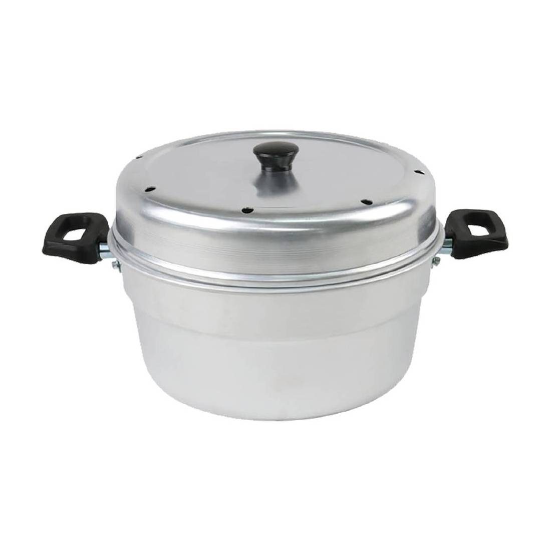 Realizzata in alluminio puro, spessore 1 mm. Completa di maniglie in bachelite e coperchio superiore con fori d'aria. Non adatta in forno, permette di preparare torte, ciambelle, pane cuocendo su fornello a gas anziché in forno. In scatola 'gift box'.