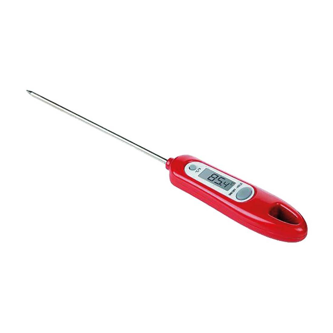 In acciaio inossidabile di alta qualità e plastica resistente, provvisto di un display LCD e di una custodia protettiva per il sensore termico da 11 cm. Range di temperatura -50/+300°C. Indicato per il controllo della temperatura di salse, marmellate, creme fatte in casa. Funziona con 1 batteria LR44 inclusa. Resistente al vapore e all’umidità. Lunghezza cm. 21.