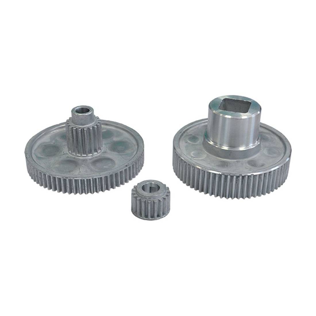 Composto da 3 pezzi: ingranaggio piccolo, ingranaggio doppio, ingranaggio con mozzo.