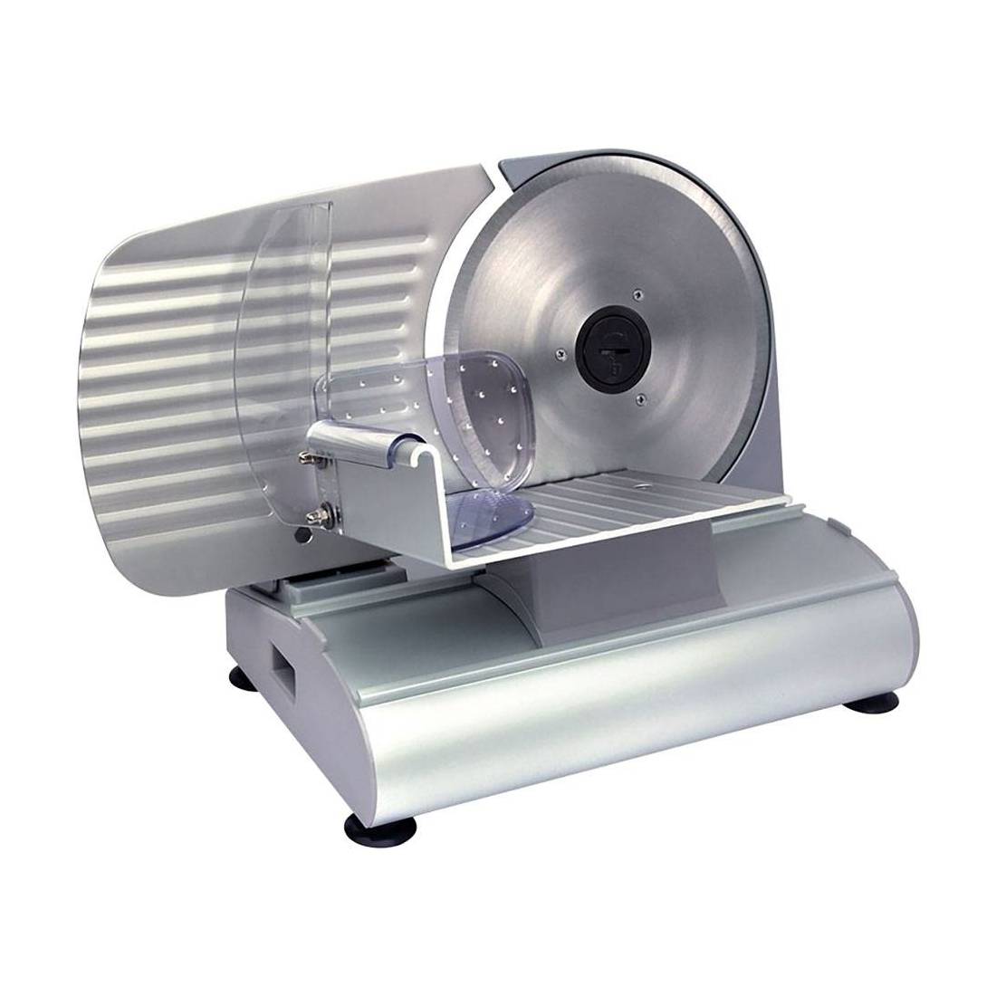 Carcassa e carrello porta salumi in alluminio estruso. Lama in acciaio, smontabile con facilità per operazioni veloci di pulizia. Premisalumi e protezione in plastica per alimenti. Capacità di taglio utile 160x180 mm, corsa carrello 22 cm. Spessore taglio da mm 0 a mm 14 mm. Dimensioni cm 43x25xh.30. Peso 4,7 kg.