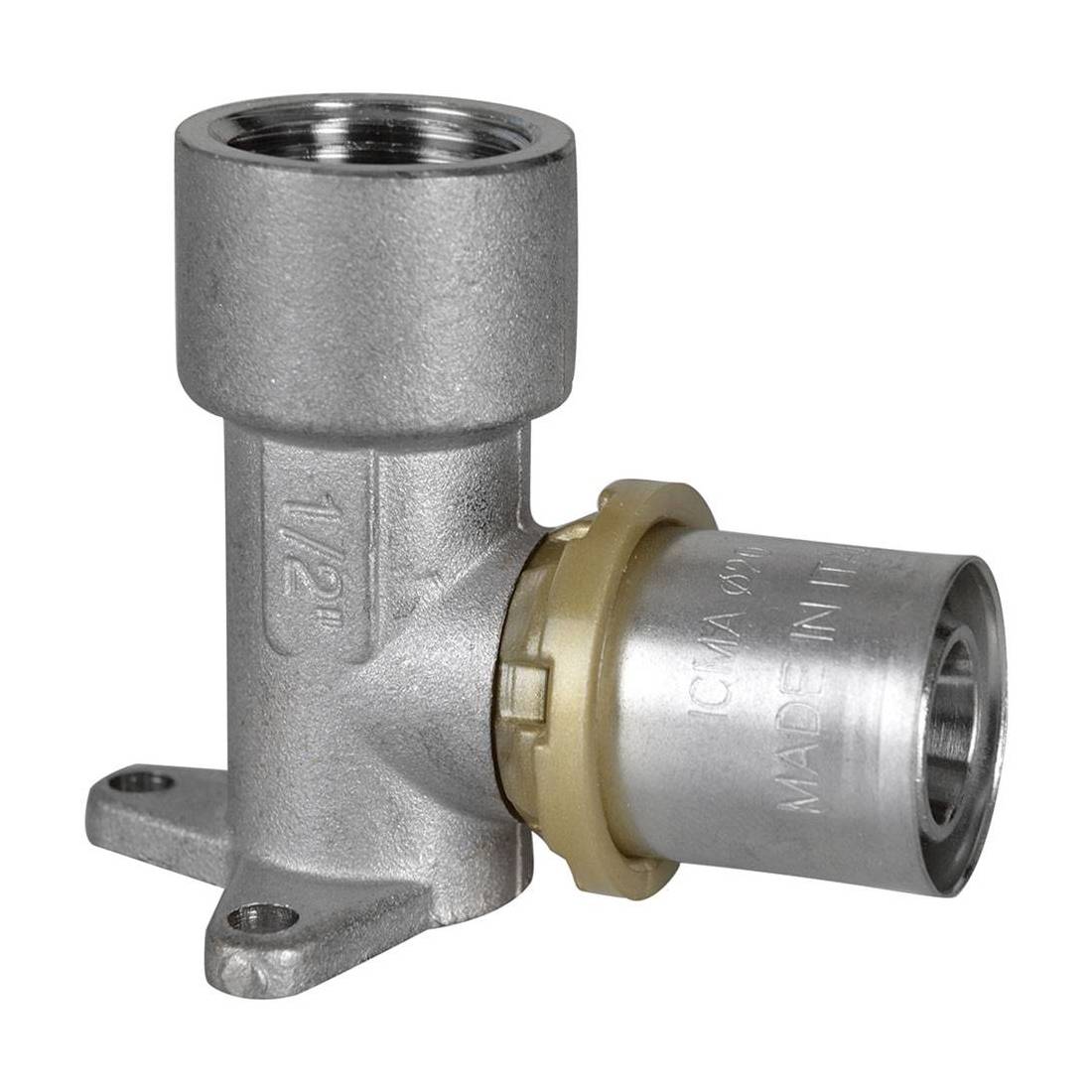RACCORDO A PRESSARE CURVO CON FLANGIA 3 FORI 'ART. 410' 16 x 2 x 1/2 - femmina