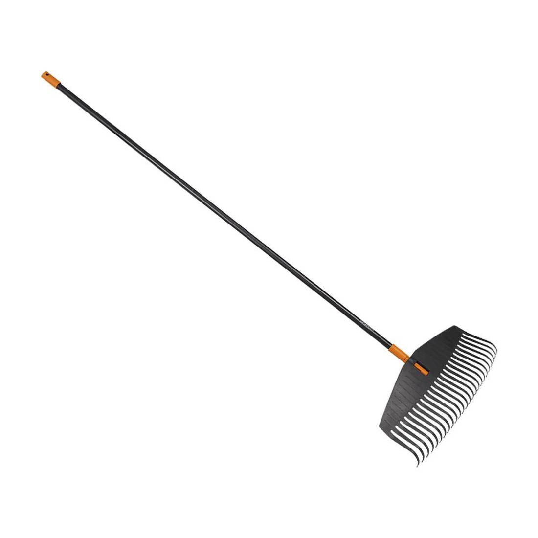 Per foglie, in PVC. Ampia testa per lavorare su grandi superfici. Denti flessibili e resistenti, la speciale geometria evita che le foglie restino incastrate. Manico in alluminio leggero e resistente.