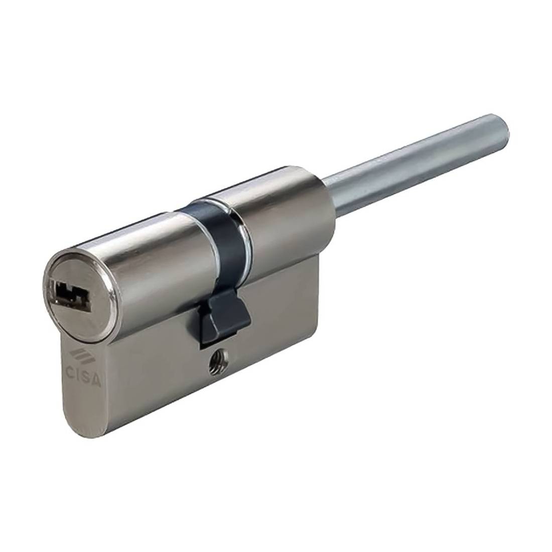 Profilo europeo, corpo e cilindretti in ottone nichelato (perni e controperni in acciaio carbonitrurato). Con doppio cilindro predisposto per montaggio pomolo, con gambo accorciabile. Il sistema di cifratura impiega 8 perni (6 attivi e 2 passivi), distribuiti su due file, oltre 260.000 combinazioni (chiavi diverse). Dotato di protezione brevettata BKP (Bump Key Power) contro tecniche di effrazione come il bumping. Protezione certificata al trapano ed elevata resistenza alla tecnica di effrazione. Camma frizionata in acciaio sinterizzato autolubrificante DIN. 100.000 cicli (conforme a EN1303: 2015 durability - durata - Grado 6). Indicato per edifici pubblici, commerciali e in particolare per l'installazione in cantiere di porte blindate. Configurazione chiave da cantiere 1+5. In dotazione: 1 + 5 chiavi, cover, personal card (per la copia delle chiavi attraverso codice) e vite di fissaggio.