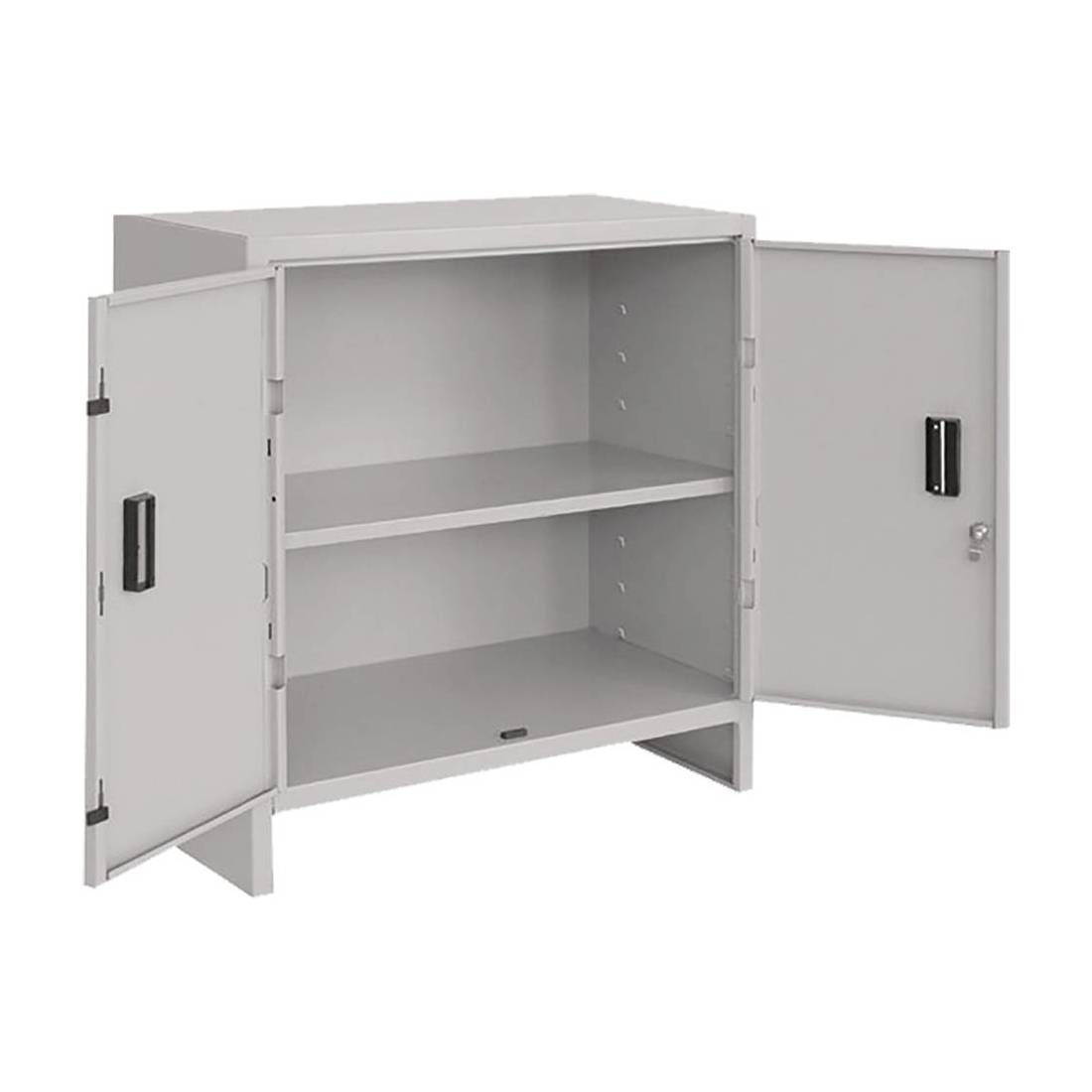 Fornito smontato. In lamiera verniciata, due ante battenti con maniglie ergonomiche. Completo di una mensola. Spessore 6/10. Ideale per organizzare attrezzi, materiali per la pulizia o altri oggetti, mantenendo l'ambiente ordinato e sfruttando al meglio lo spazio disponibile.