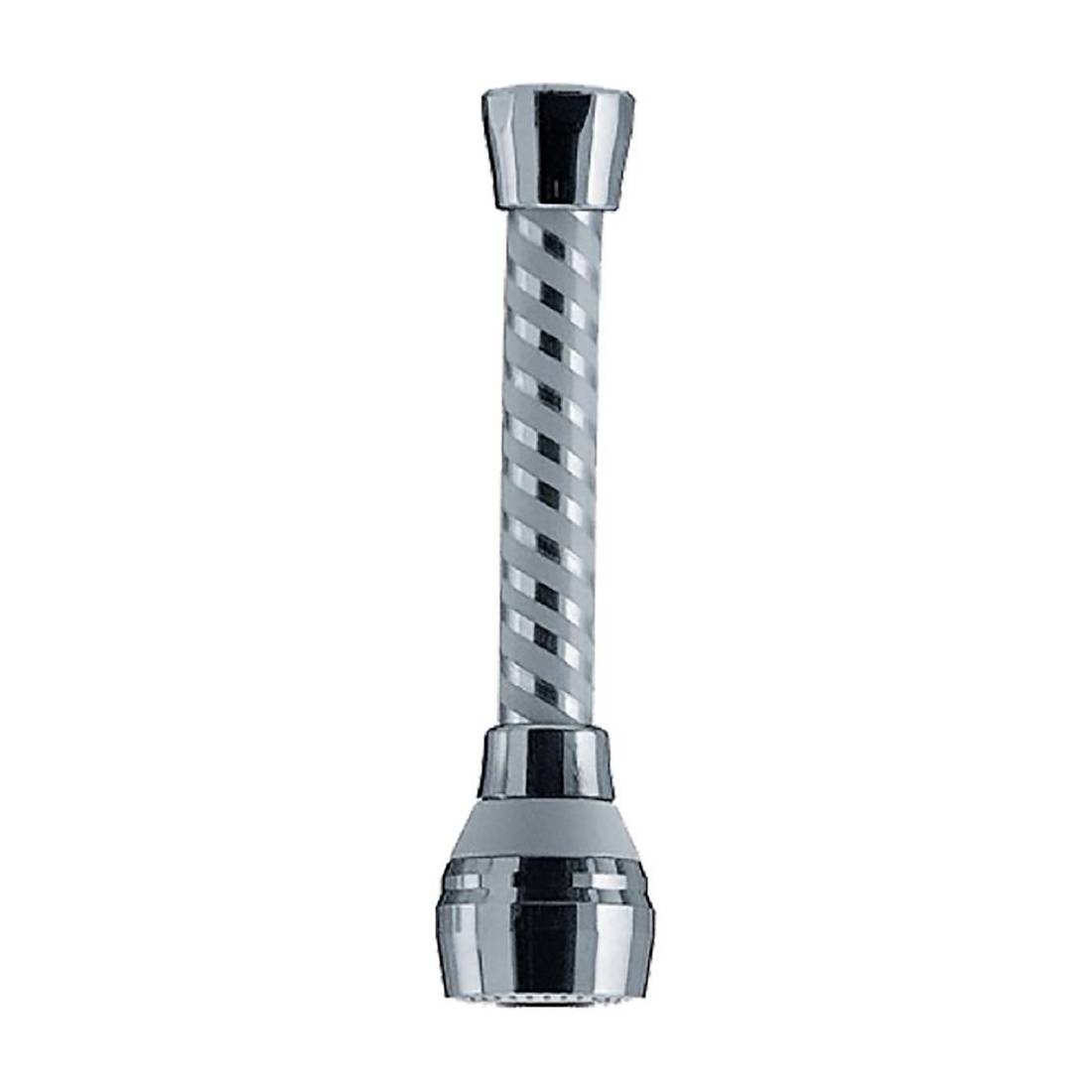 Con aeratore e doccetta cromata. Cannuccia in bimateriale. Per rubinetti lisci.