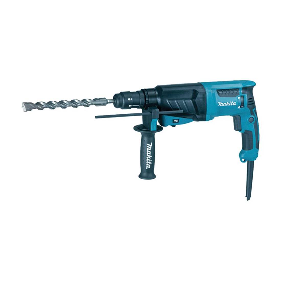 Dotato di 3 funzioni: rotazione, rotazione+percussione e solo percussione. Attacco SDS-plus, impugnatura ergonomica con softgrip. Interruttore elettronico, frizione di sicurezza, revesibile. Impugnatura laterale ed asta di regolazione profondità. Mandrino a sgancio rapido. Dotazione kit di punte e scalpelli attacco SDS in valigetta così composto: punte da 5x110 mm, 5,5x110 mm, 6x110 mm, 6x160 mm, 7x160 mm, 8x110 mm, 8x160 mm, 8x210 mm, 10x110 mm, 10x160 mm, 10x210 mm, 14x260 mm, scalpelli a punta lunghezza 140 mm, 250 mm, scalpelli piatti 140x20 mm, 250x20 mm, 250x40 mm. In valigetta.