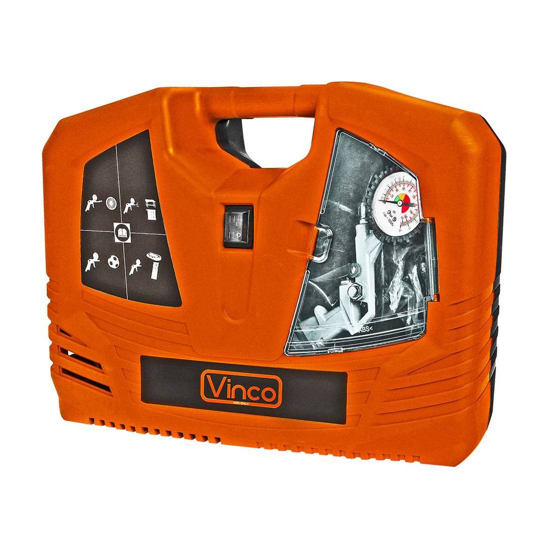 A valigetta, perfetto per essere trasportato comodamente ovunque. Include un kit accessori: 2 ugelli, pistola per gonfiaggio con pressostato, 3 aghi (per palloni, materassini e biciclette), tubo di gomma da 2 mt con attacco rapido. Pressione 8 bar, 3550 giri/min. 230V/50 Hz. Dimensione cm 50x12x37,5.