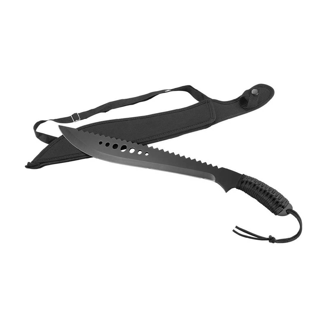 Lama in acciaio inox. Manico in acciaio inox rivestito con cordino. Adatto per pulizia di cespugli. Completo di fodero in tessuto.