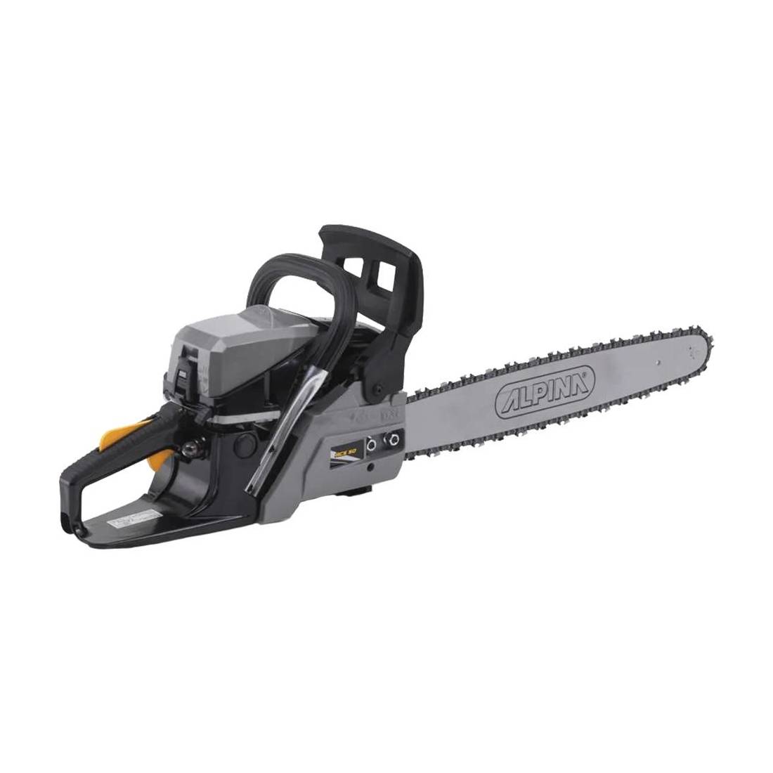 Accensione a strappo, motore 2 tempi monocilindrico a benzina. Primer per avviamento rapido a freddo, sistema automatico di blocco catena, sistema anti-vibrazione su gommini. Tendicatena laterale. Carter filtro aria smontabile con pratica leva a scatto automatico. Sistema di ispezione rapida, accesso rapido per operazioni di manutenzione. Lunghezza barra di taglio cm. 50. Potenza 49,3 cc. Peso 5,5 kg.