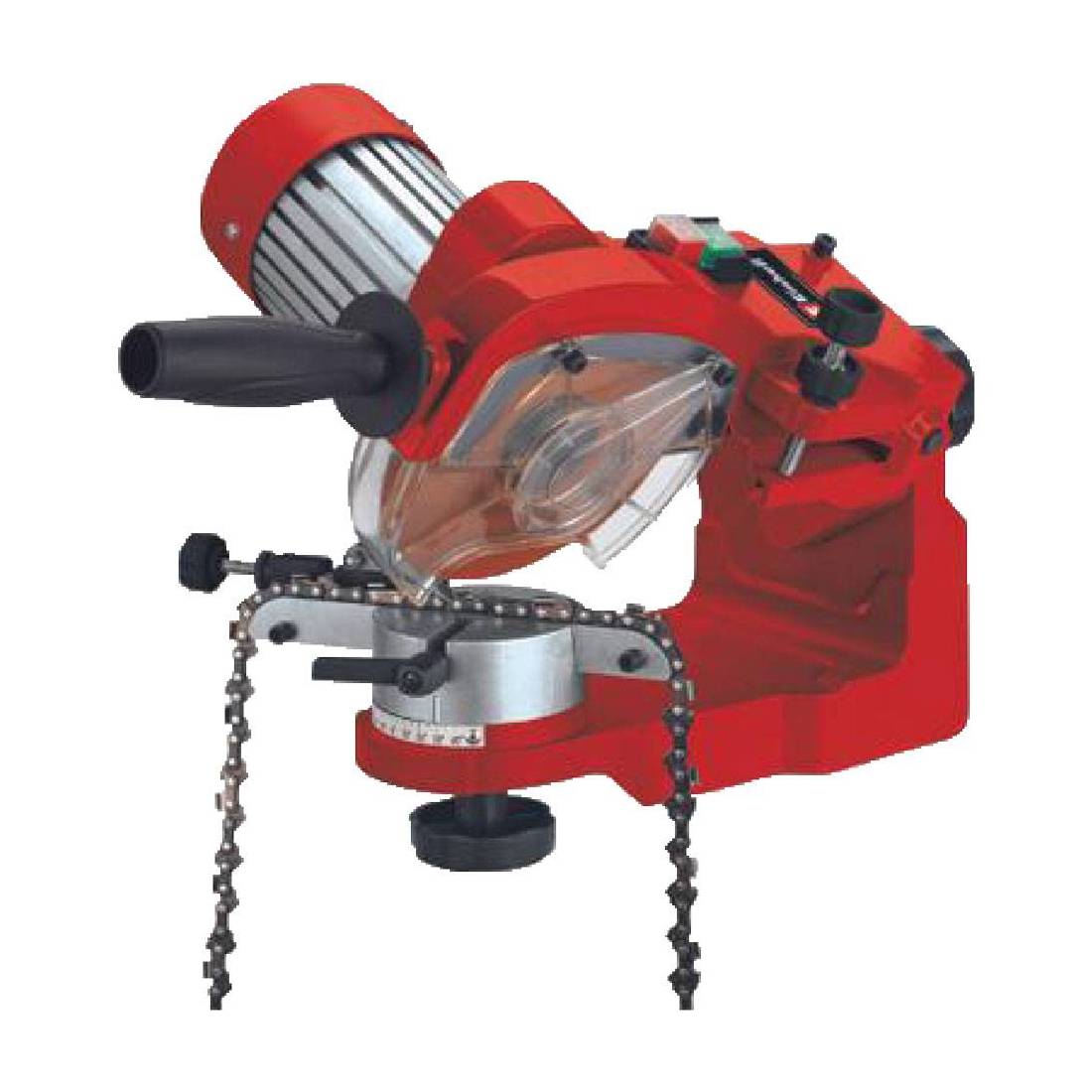 Scala graduata per la regolazione di precisione dell angolo di affilatura, dispositivo di tensione della catena, vetro vista trasparente, illuminazione. Testina abrasiva orientabile, limitazione di profondita. Completa di disco abrasivo da 145x22x3,2mm. Tensione 230V - 50Hz.