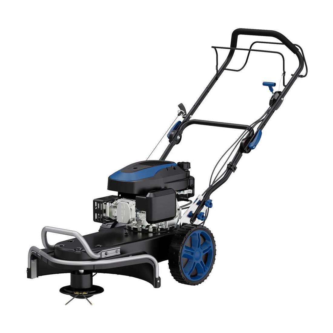 A trazione semovente. Dotato di motore a 4 tempi con avviamento manuale, cilindrata 173 cc e livello di rumorosità di 98 dB. Potenza 4,8 HP / 3,6 kw, con regime massimo di 3600 rpm. Ideale per la manutenzione di giardini e aiuole in ambito domestico. Struttura con scocca in metallo, maniglia frontale e manopole ripiegabili. Sistema di taglio con filo in nylon da 4 mm, Ø taglio 560 mm. Serbatoio da 1,5 lt. Dimensioni cm 139x56x102. Peso 34/37 kg.