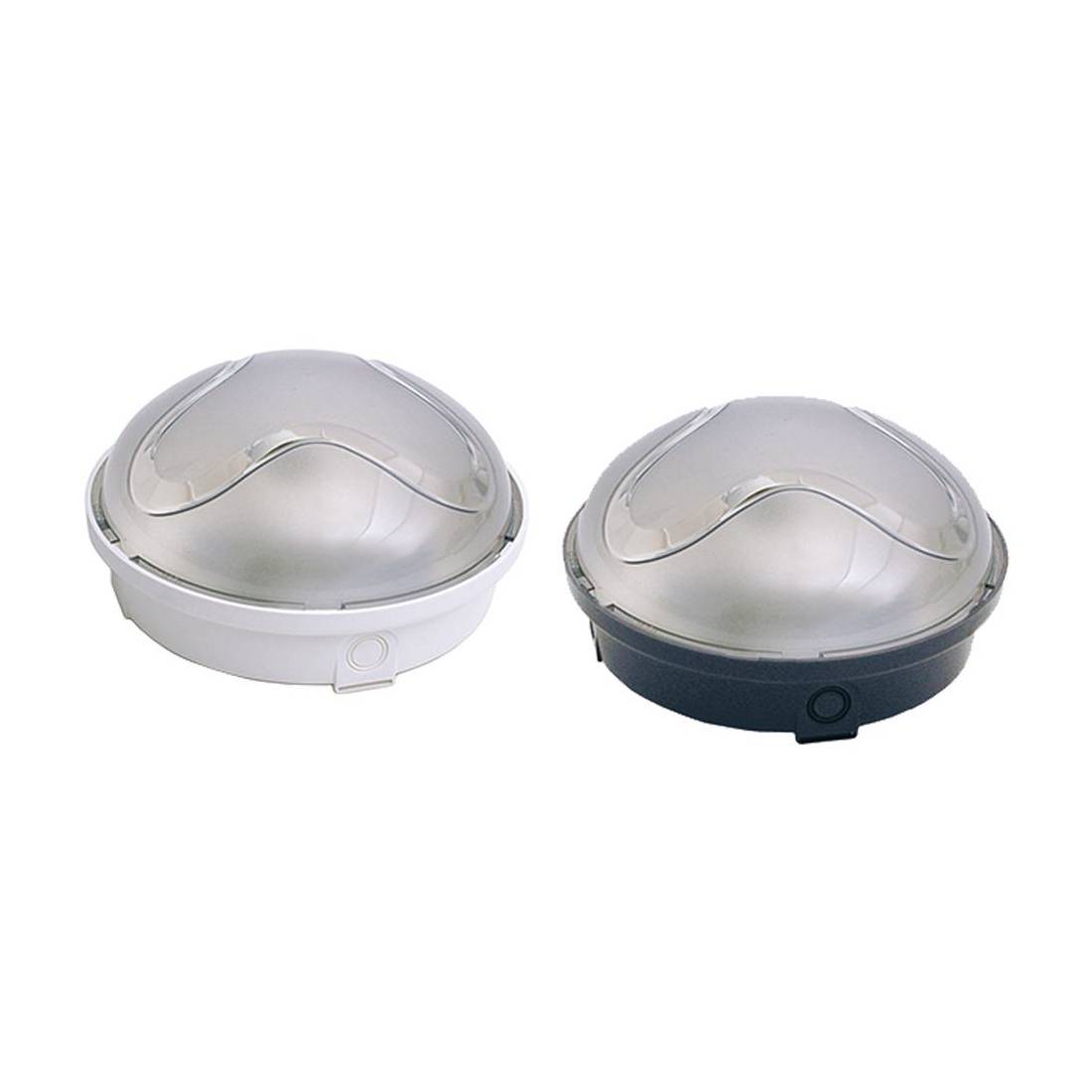 Struttura in plastica, calotta in policabonato. 60 W, attacco E 27, ø cm 21,5.