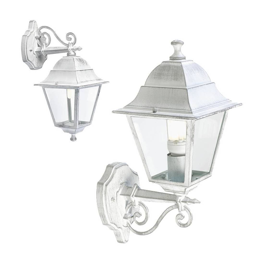 Struttura in pressofusione di alluminio. Trattamento anticorrosivo, verniciatura a polveri epossidiche. Adatta per lampade ad incandescenza e a risparmio energetico. Attacco E27, IP43. Potenza massima 60 watt.