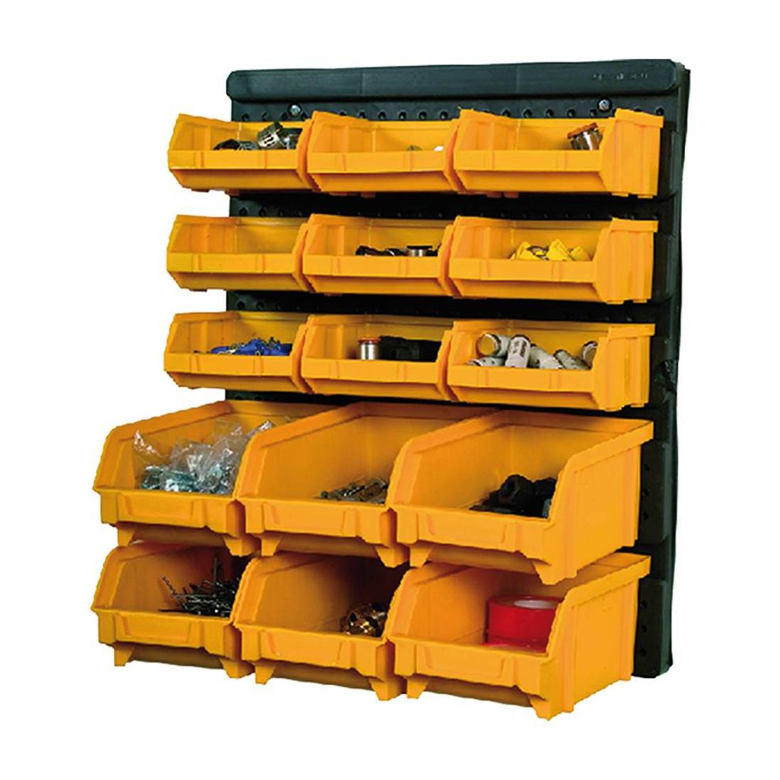 Con 9 contenitori piccoli + 6 medi. In polipropilene.