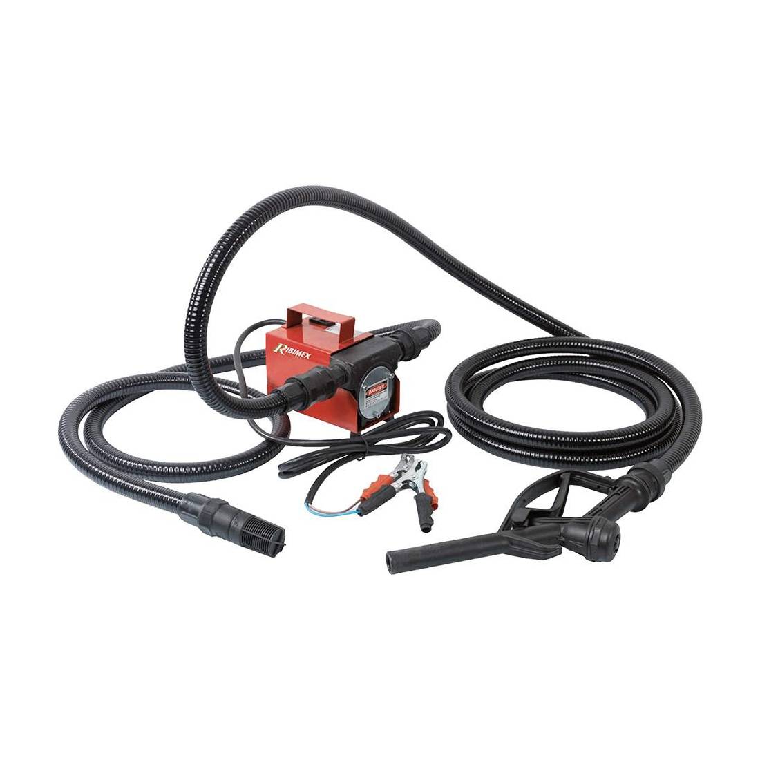 Indicata per utilizzo in ambienti privi di alimentazione elettrica. Idonea per travasare gasolio da fusti, serbatoi e cisterne. Motore in corrente continua con magneti permanenti fissati sulla pompa. Albero motore in acciaio C 40, corpo pompa in resina poliammide. Rivestimento acciaio laccato, impugnatura per il trasporto. Interruttore on/off. Cavo 1,90 metri con pinze isolate. Con accessori: tubo flessibile 3/4' anellato con portata 44 lt/min. (2 metri Ø 22 per aspirazione, 4 metri Ø 22 per portata), valvola di fondo e pistola in plastica. Funzionamento con batteria 12V.