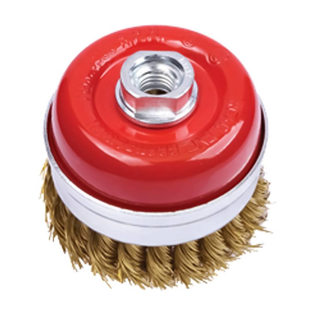 Per smerigliatrice angolare, indicata per sverniciare, pulire metalli, togliere ruggine e saldatura. Fili in acciaio con mazzetti ritorti. In blister.