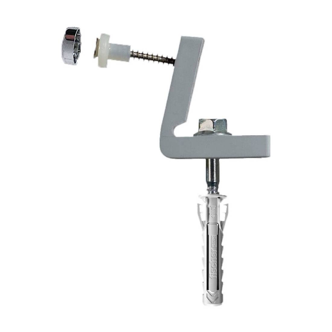Con staffa forata in nylon, vite mordente TE zincata bianca, rosetta Ø 8,2 mm, vite truciolare inox A2 AISI 304 taglio a croce 5x45, vite truciolare inox A2 AISI 304 taglio a croce 5x60, boccola nylon, calotta coprivite cromata. In busta da 2 pezzi.