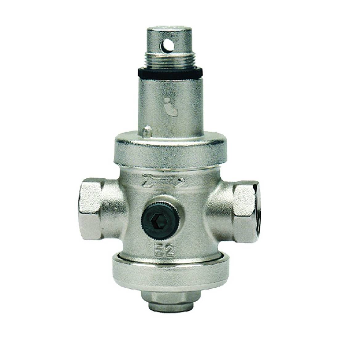 Corpo in ottone nichelato. Funzionamento a pistone con sede compensata. Taratura tra 1 e 6 bar.
