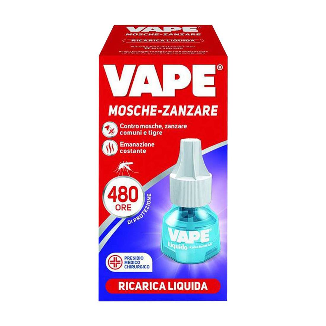 Per eliminare zanzare comuni, zanzare tigre, mosche e altri piccoli insetti volanti. La sua azione insetticida e repellente elimina gli insetti presenti nella stanza e impedisce agli altri di entrare dalla finestra. Compatibile con tutti i diffusori Vape. Completamente inodore. Efficiace fino a 60 notti.