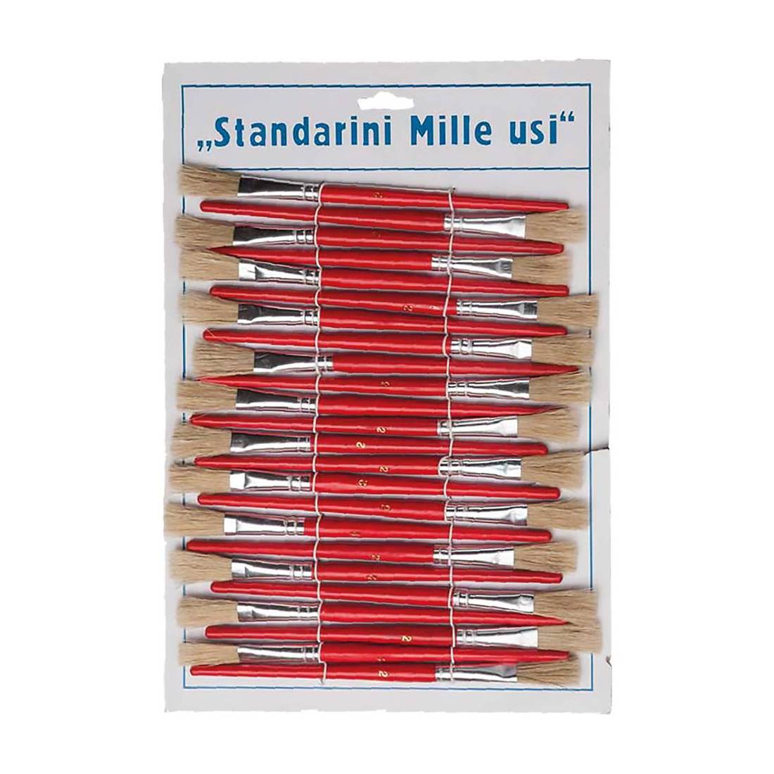 In pura setola bionda, ghiera un metallo. Manico in legno verniciato. In cartella da 24 pezzi.