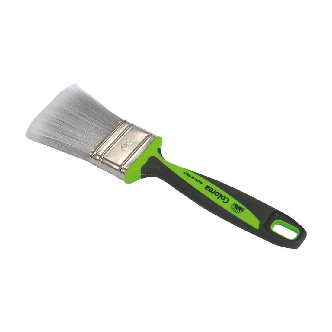 Pura setola sintetica. Specifica per prodotti a base d'acqua e impregnanti legno. Manico in plastica bicolore.