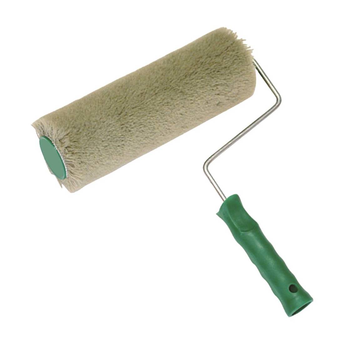 In tessuto poliamidico cordonato verde. Completo di manico anatomico antisolvente, corpo Ø 50 mm sfilabile, ferro Ø 7 mm. Ottima presa di colore e distensione su supporti murari. Indicato per superfici lisce e ruvide.