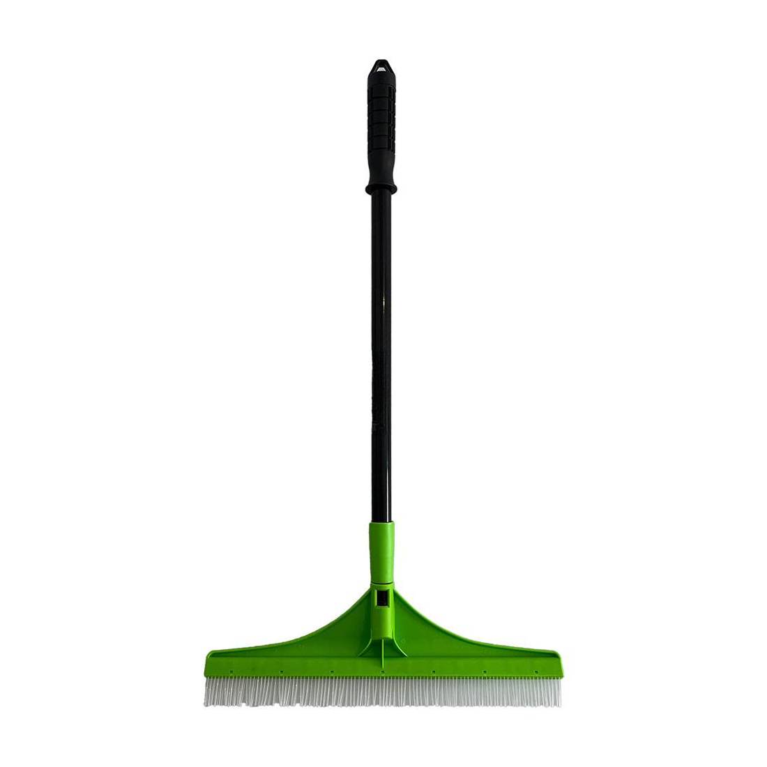 Con setole in poliammide da h. 35 mm (Ø 1,3-0,05 mm). Adatta per puliure e rimuovere detriti e muschio da prati artificiali. Solleva delicatamente i ciuffetti in posizione corretta, penetra nella trama del prato e spazza via detriti dannosi che, con il tempo, potrebbero danneggiarlo. Manico telescopico in ferro (lunghezza 68,5 > 122 cm), impugnatura antiscivolo posta all'estremita' e gancio in TPU. Fissaggio alla scopa tramite incastro a scatto.