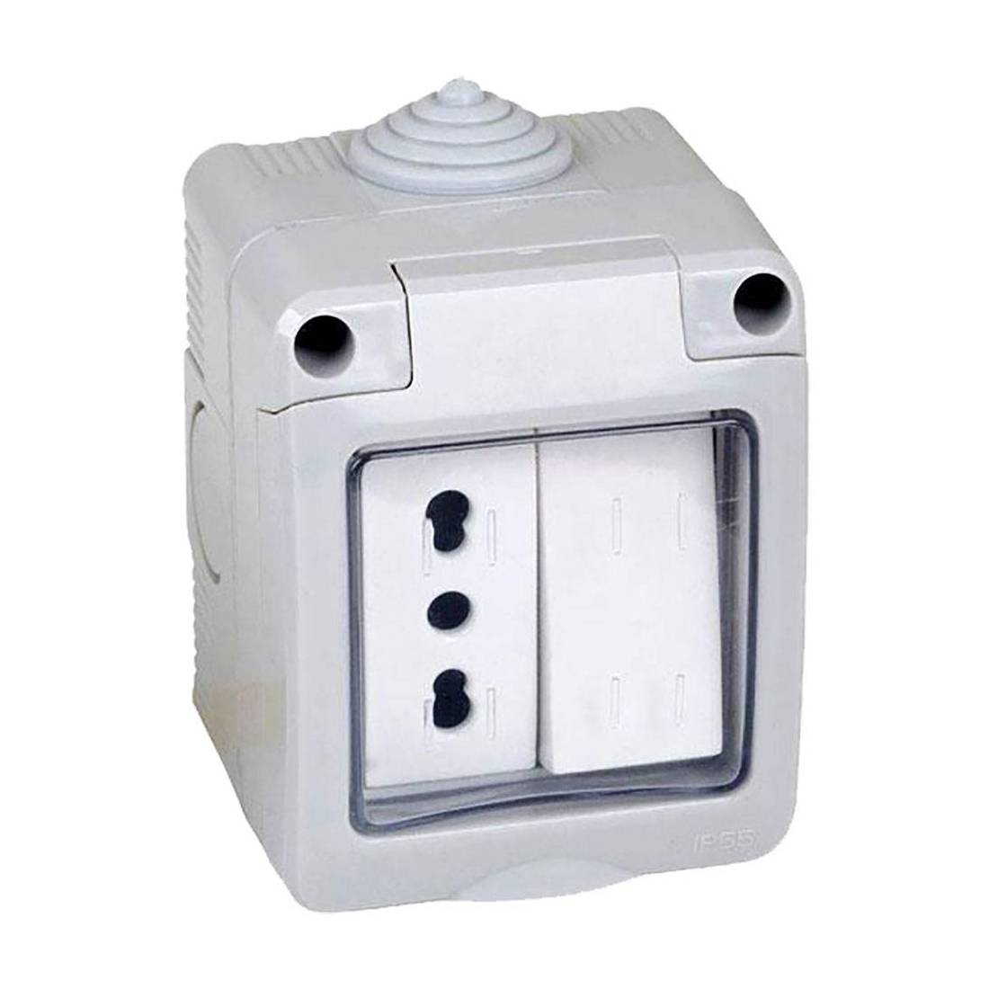 CONTENITORE ESTERNO INTERRUTTORE + PRESA 1 deviatore + presa bivalente 10/16A