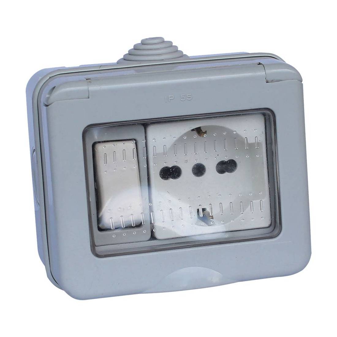 CONTENITORE ESTERNO INTERRUTTORE + PRESA / SCHUKO 1 deviatore + 1 presa bivalente 10/16A / schuko