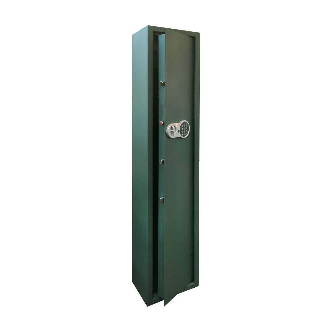 Con tesoretto. Struttura in lamiera d'acciaio speciale,spessore porta di mm 3. Con serratura digitale. Con vano porta oggetti. Sostegni canna per fucili. Fori di ancoraggio a muro e a pavimento (4+2).