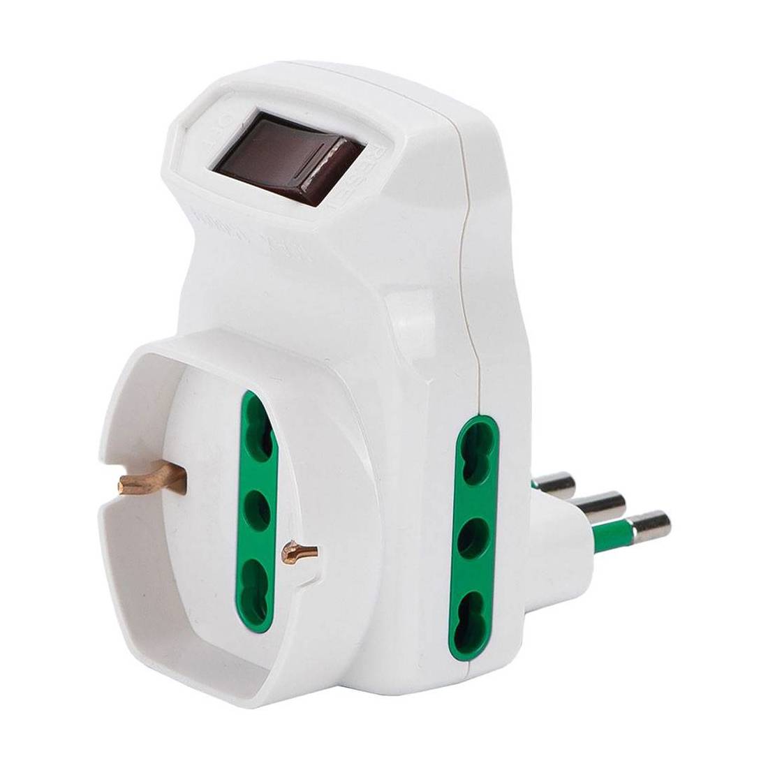 ADATTATORE TRIPLO CON PROTEZIONE SOVRACCARICO Spina 2P+T10A - bianco - art.87317
