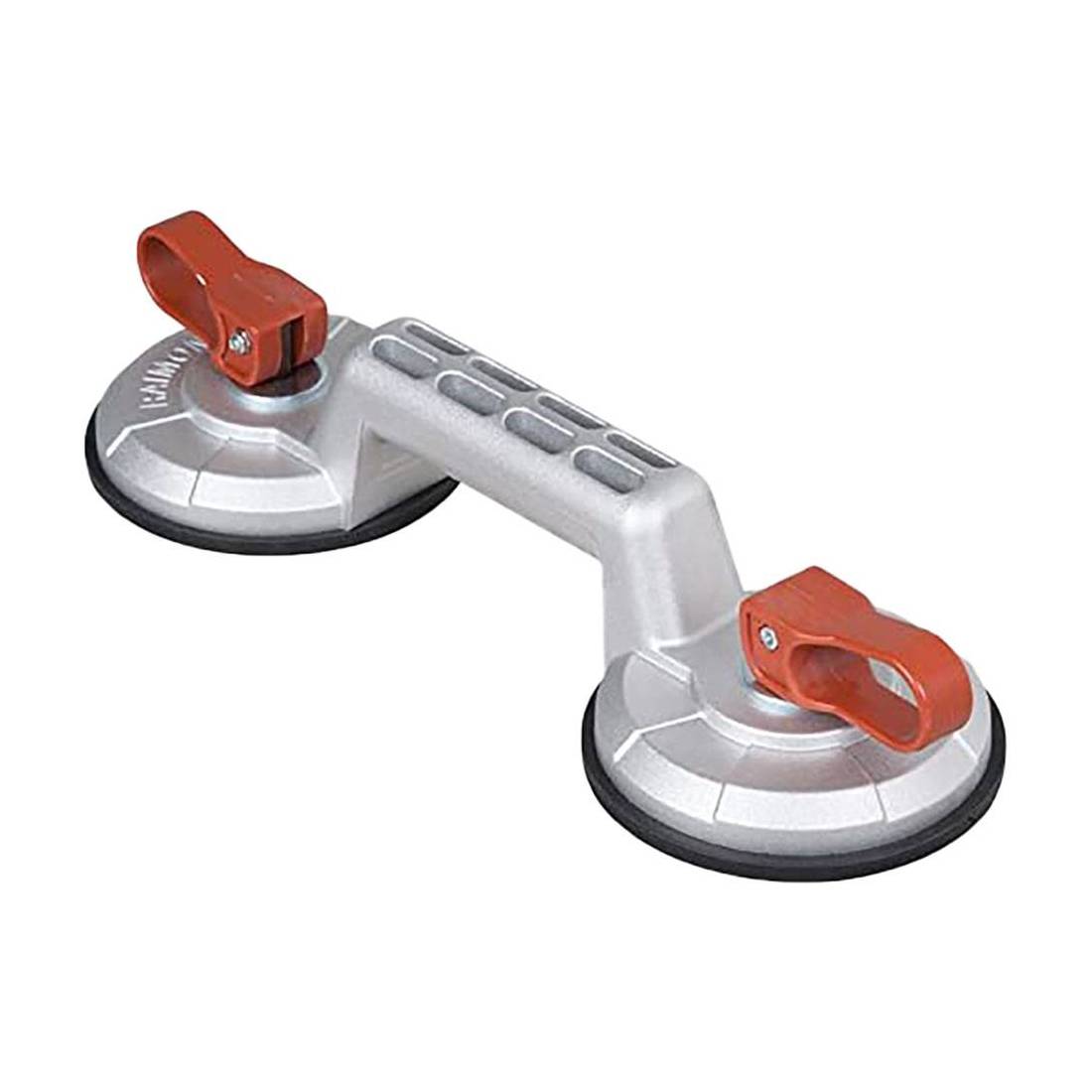 Per uso professionale. Struttura in durevole alluminio pressofuso. Grazie alla speciale gomma trilabbro, è idonea per la movimentazione di piastrelle e lastre ceramiche con superficie sia liscia che strutturata. Patte in gomma grigia antimacchia con inserto metallico, provviste di linguette per facilitare il distacco. Portata massima in posizione orizzontale (su superfici lisce e pulite): 57 kg.