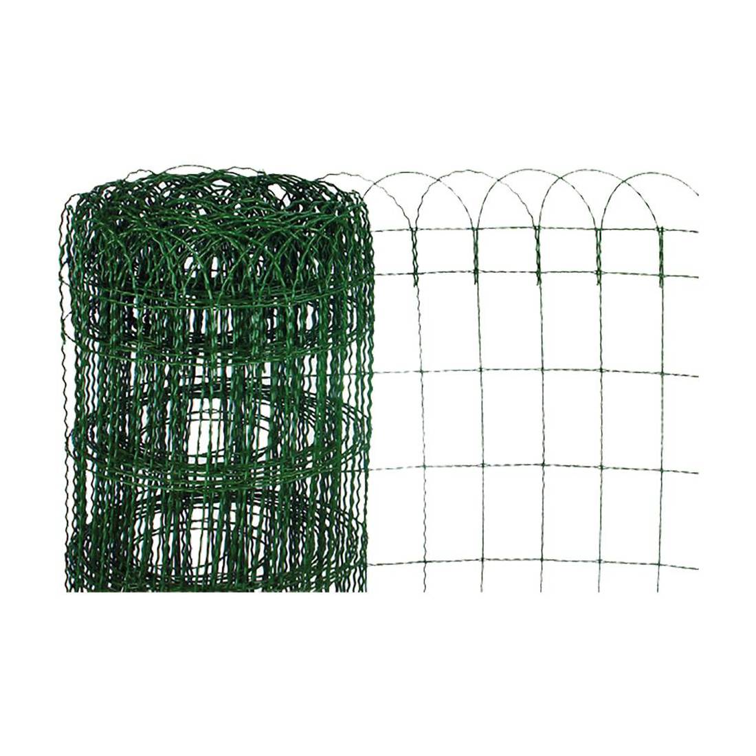 Realizzato in filo d'acciaio rivestito in plastica zincata prima della verniciatura e poi intrecciato. Offre un'elevata stabilità del colore e resistenza ai raggi UV. Rivestimento in zinco 15 g/m², Rivestimento in PVC 0,8-0,9 mm. Rotolo mt. 25. Colore verde. Filo mm 2,0 - Maglia mm 150x90.