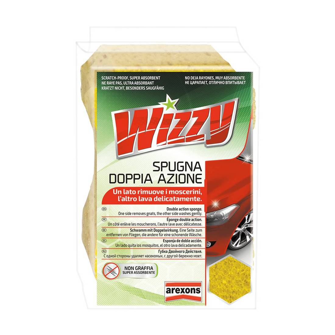 SPUGNA LAVAGGIO AUTO DOPPIA AZIONE 'WIZZY' cm 16 x 10,5 x 7