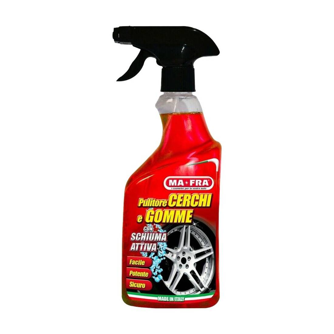 Prodotto 2in1 facile da usare, ideale per pulire efficacemente cerchi e pneumatici. La sua formula potente rimuove anche lo sporco più ostinato, aderendo perfettamente alle superfici grazie alla schiuma attiva. Sicuro su tutti i cerchi in lega. Per uno sporco persistente, si consiglia l'uso con una spazzola a setole morbide. Non adatto su cerchi in alluminio, anodizzati o motociclistici.