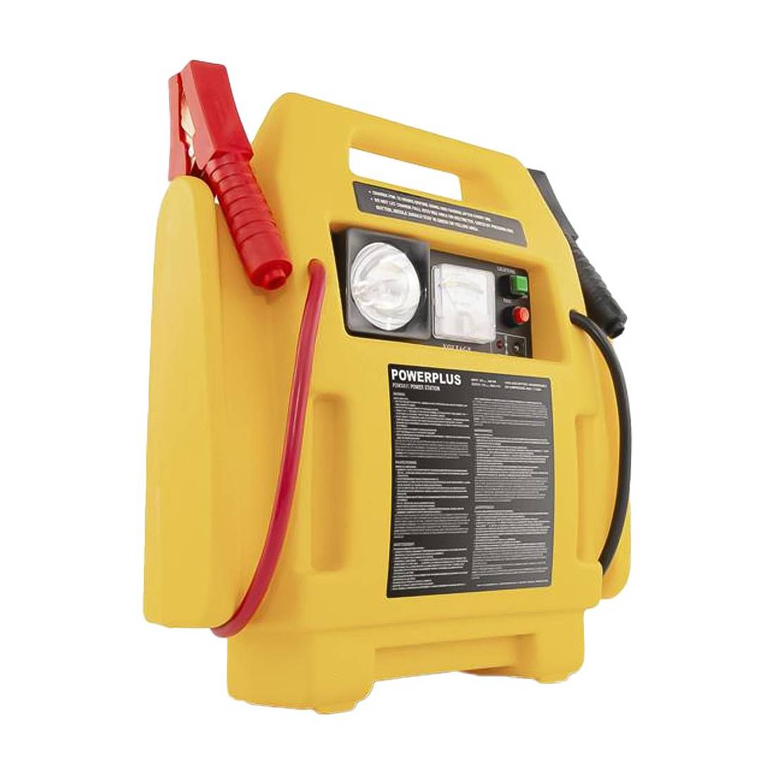 Power station multifunzione 4-in-1. Offre quattro funzionalità: avviatore per veicoli a benzina e diesel fino a un massimo di 1.600 cc (uscita 12 V, max 6 A), compressore integrato con pressione massima di 17 bar, lampada di emergenza da 3,6 W e presa 12 V. Inclusi accessori per il gonfiaggio.