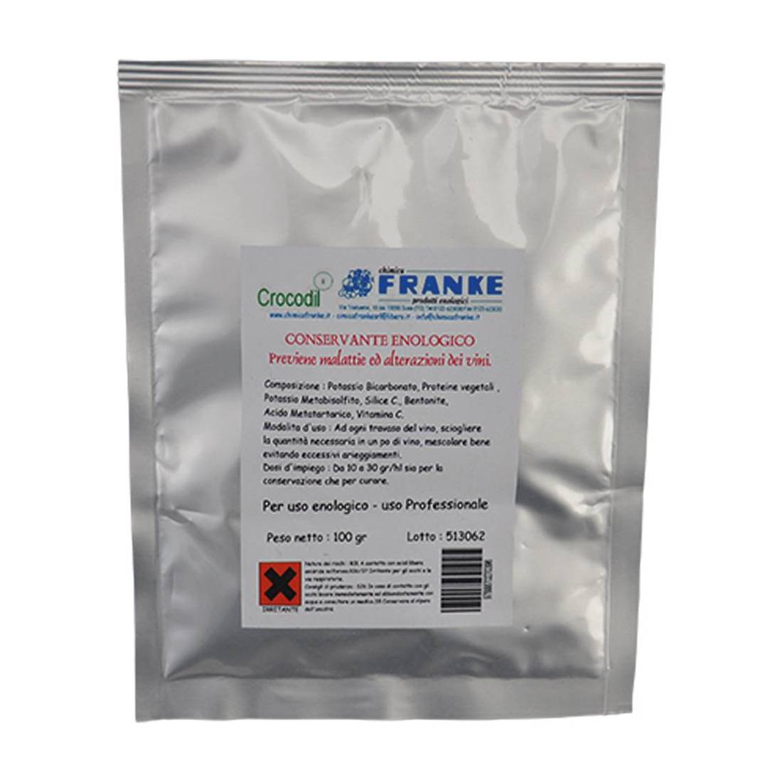 Preparato per conservare e mantenere sani i vini. Prodotto da sciogliere e da mescolare bene, evitando eccessivi arieggiamenti. Dosi d'uso: 10-30 g/hl sia per la conservazione che per la cura del vino.