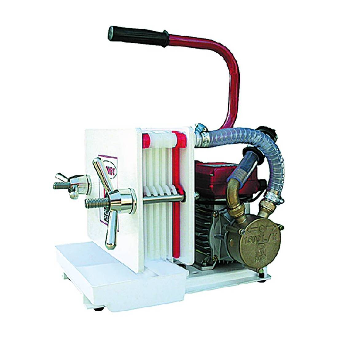 Particolarmente apprezzato per filtraggi domestici, per cantine enologiche, fabbriche farmaceutiche, laboratori, fabbriche di birra. Costituito dalla speciale elettropompa autodescante bisenso e da un sistema filtrante denominato sistema liquido a strati pressati. Questo particolare tipo di filtraggio, permette di ottenere ottimi livelli di purificazione delle bevande, senza alterare le caratteristiche fondamentali del liquido travasato. Tensione 230V.
